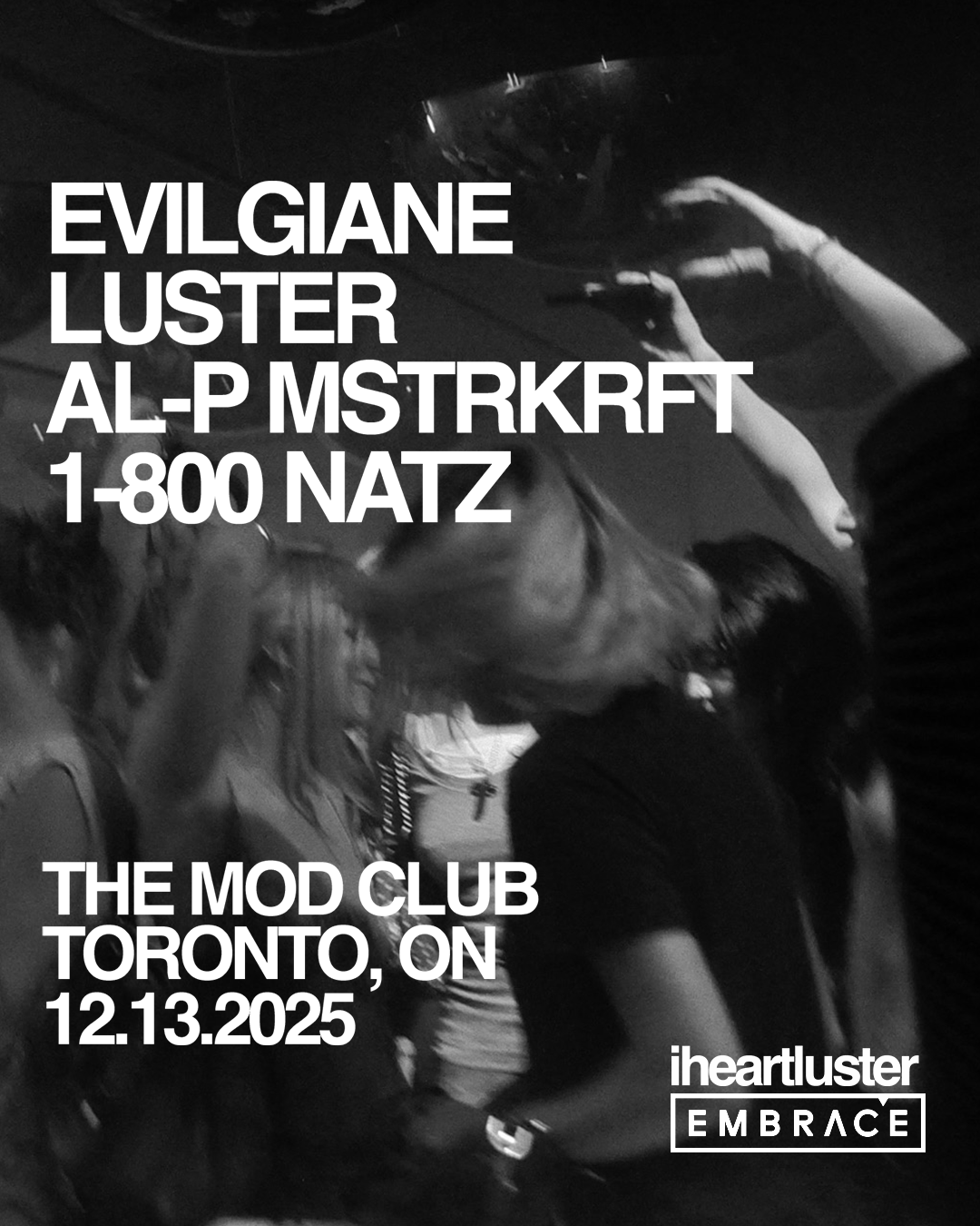 Dec 13 evilgiane The Mod Club evilgiane With: Luster Al-P MSTRKRFT 1-800 NATZ Date: December 13, 2025 Venue: The Mod Club Location: 722 College Street, Toronto, ON, Canada Time: 9:00 PM Ages: 19+ Gen Admission: $15.00 - $25.00 (plus fees) Buy Now Purchase Tickets From These Selected RetailersTicketmasterRSVP More Info Related No related events.